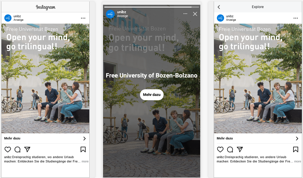 - Formati degli annunci: utilizzo di video e caroselli per mettere in risalto le peculiarità dei corsi di studio e della vita nel campus.