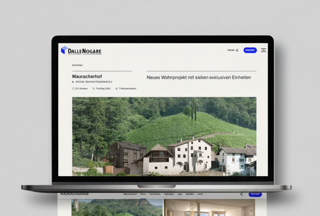 Dato il vasto portfolio di progetti immobiliari e l’alta qualità, l'obiettivo era chiaro: il nuovo sito web doveva riflettere questo standard anche nel digitale. Per la realizzazione DalleNogare si è rivolta a teamblau. L'intento era creare una piattaforma online moderna e attuale, capace di presentare i contenuti in modo chiaro, strutturare i progetti in maniera intuitiva e, allo stesso tempo, convincere per l'estetica.