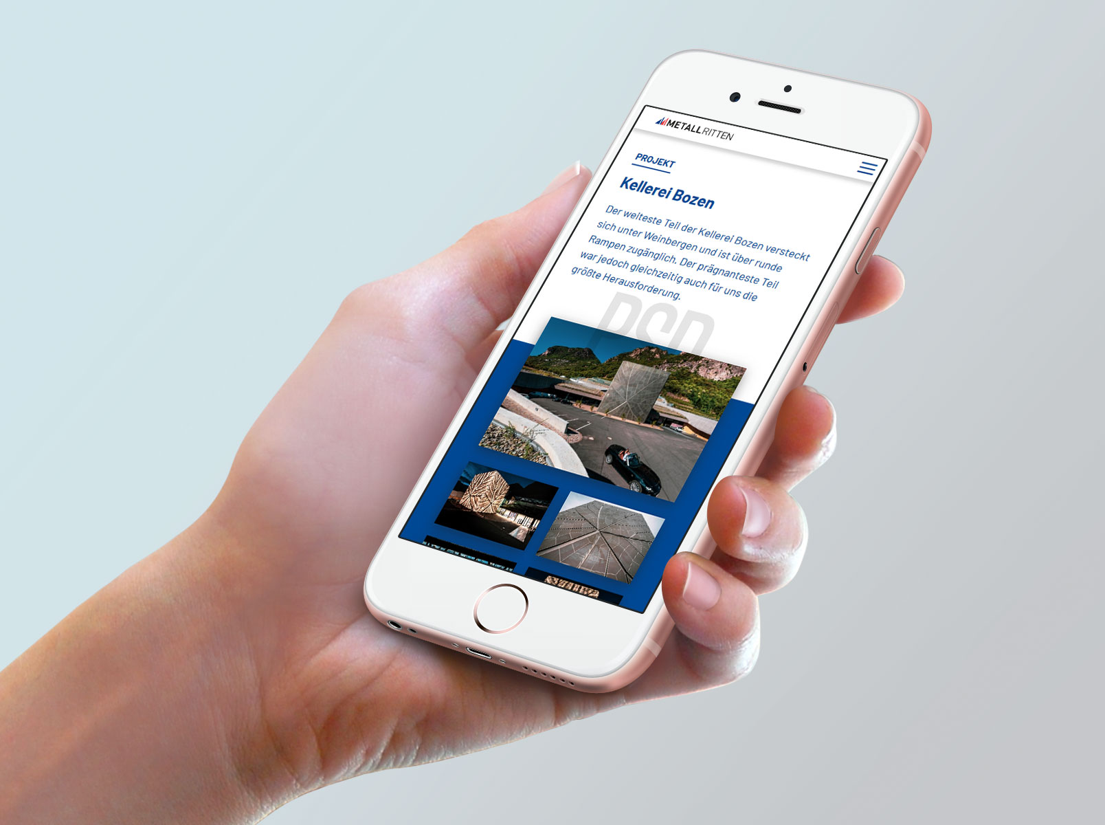 Metall Ritten necessitava di un sito web al passo con i tempi ed allo stesso tempo, che riuscisse a raffigurare in modo adeguato i valori dell’azienda. Per questo, la parte tecnica, di cui teamblau è responsabile, doveva essere adatta al nuovo CD e presentare le referenze in modo professionale e accattivante. Di fondamentale importanza dunque, la parte tecnica del sito. teamblau ha utilizzato metodi all’avanguardia, un’estetica accattivante e moderna e tutta la nuova tecnologia disponibile sul mercato.
